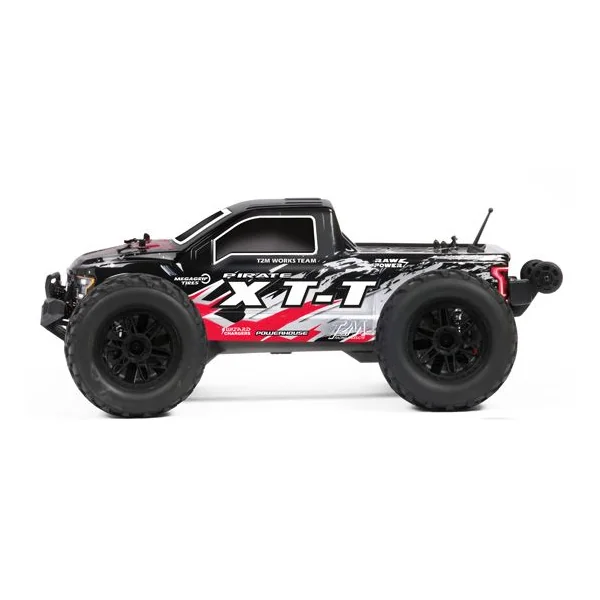 Ce nouveau Pirate XT-T est un monster truck électrique redoutable en tout terrain ! • Moteur brushless format 3652 3000 kV Spécificités de la radio 2.4ghz installé sur ce Pirate XT-T T2M Brushless : • Système de radiocommande 2 voies 2,4GHz préinstallé.