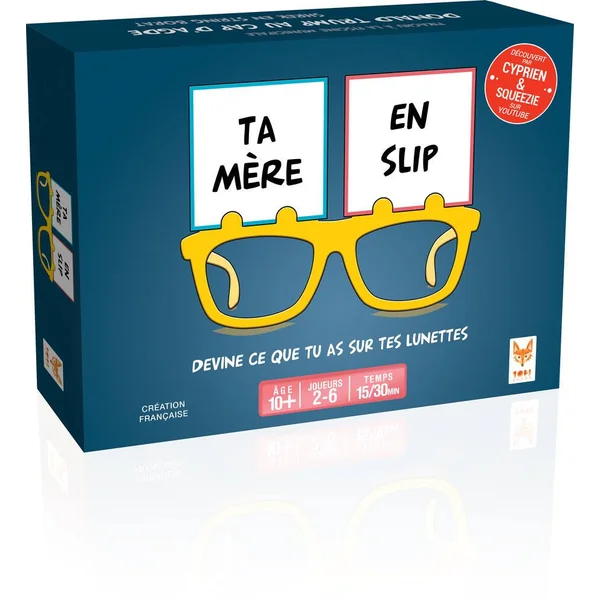 Tous les joueurs vont découvrir leurs personnages en même temps. Ça commence déjà avec un fou rire général ! Il y a des centaines de combinaisons loufoques. C’est parfait pour jouer entre amis, chez vous ou dehors. Enfilez vos lunettes et rigolez un bon coup !. Des lunettes cool pour briller en société ou pour accrocher tes cartes et avoir les mains libres. Une vidéo de présentation par Squeezie, Cyprien, Natoo et Julfou. Plus de 4 millions de vues, plus de 200 000 likes. *