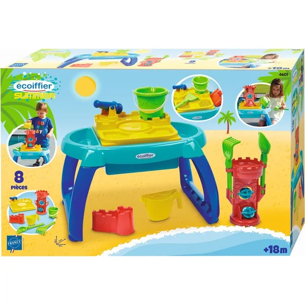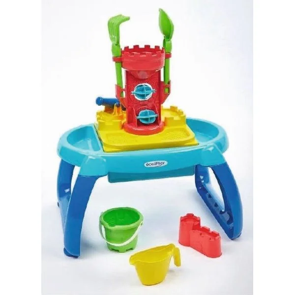 - Dimensions de la table : 50 x 37 x 30 cm (l x p x h), dimensions de la table avec le moulin, la pelle et les râteaux : 50 x 37 x 66 cm (l x p x h).