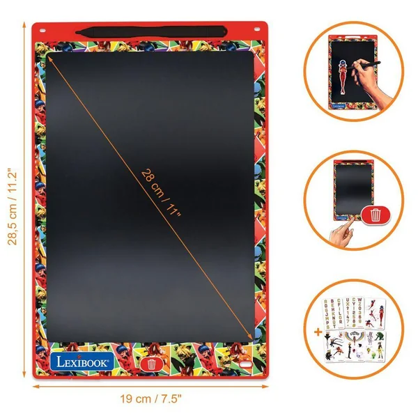 Rend l’écriture, le dessin et l’apprentissage plus amusants avec la Tablette E-Ink Dinosaure ! Écran sensible à la pression pour ajuster le poids des lignes. Conception ultra-mince, légère et durable. Emmenez-le partout où vous allez : trajet domicile-travail, restaurant, amis, etc. Pochoirs inclus pour apprendre à dessiner et à écrire ! Un grand écran de 28 centimètres ! Bouton unique pour effacer le contenu ! Vous pouvez en démarrer d’autres avec une simple pression. Unverrouvous empêche d’effacer accidentellement vos dessins ! Économisez du papier ! Plus de gaspillage ! Batterie fournie – Consommation d’énergie ultra-faible Stylet inclus avec un espace de rangement en haut de la tablette.