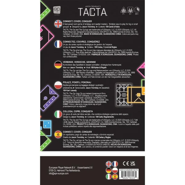- Conçu pour les 7 ans et plus, Tacta se joue en plus de 20 minutes, ce qui le rend parfait pour les familles, les amis et les amateurs de jeux.