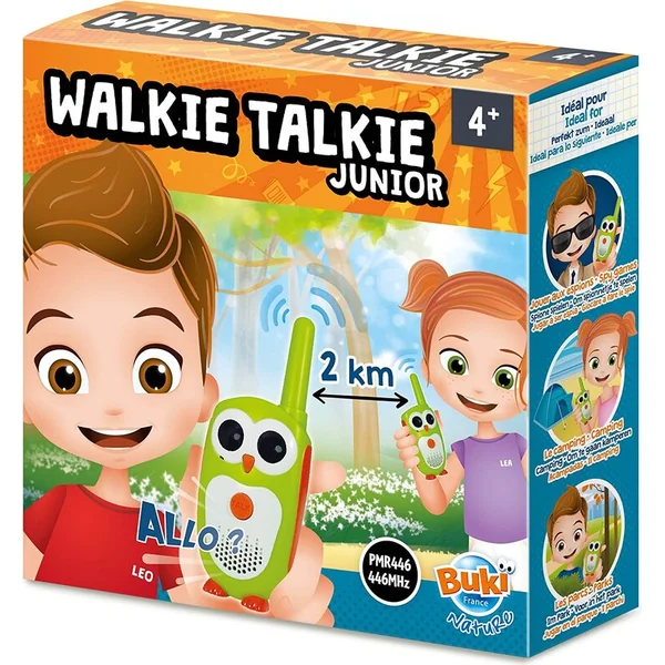 Les talkies-walkies pour enfants Buki sont des jouets de qualité avec des caractéristiques de véritables émetteurs-récepteurs pour adultes. Leur principal avantage est une portée en plein air allant jusqu’à 2 km.