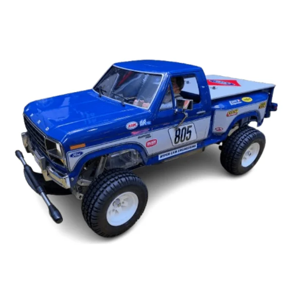 La carrosserie reprend les lignes emblématiques du Ranger XLT, version haut de gamme du F-150, caractérisée par ses finitions spécifiques et ses détails extérieurs distinctifs. Le kit intègre de nouveaux éléments moulés, dont les rétroviseurs latéraux, les essuie-glaces et les phares, auxquels peuvent être ajoutés des feux LED vendus séparément. La partie avant comprend une calandre détaillée et des protections de pare-chocs, tandis que les emblèmes Ford à l’avant et à l’arrière sont reproduits avec soin. Des vitres triangulaires ont également été ajoutées sur les côtés de la cabine pour renforcer le réalisme.