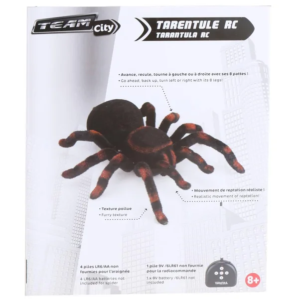 Texture poilue. Mouvement de reptation réaliste. 4 piles LR6 non fournies pour l’araignée.