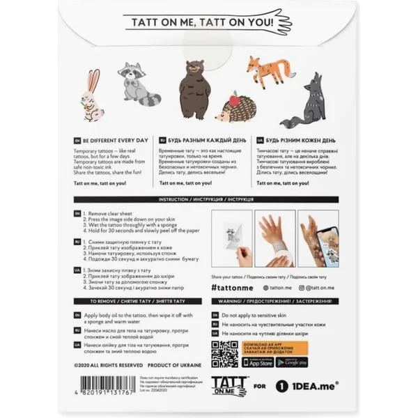 TATTonMe Tatouages vivants pour enfants Animaux de la forêt