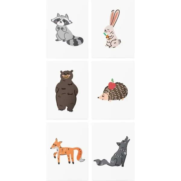 Vous cherchez quelque chose de plus intéressant qu’un simple tatouage pour enfants ? Les tatouages vivants résoudront cela pour vous ! Les habitats forestiers sont les stars de notre paquet de tatouages temporaires vivants. Faites connaissance avec nos animaux : un renard, un raton laveur, un ours brun, un loup, un petit lapin et un hérisson. Tatouez-les comme des tatouages temporaires ordinaires et regardez-les prendre vie !
