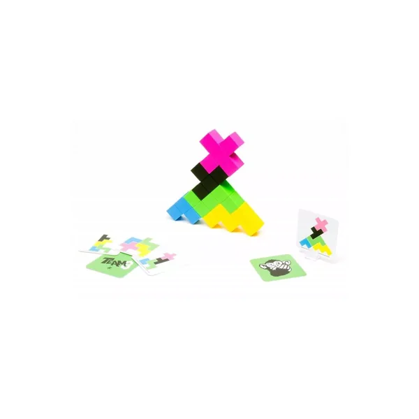 Le jeu ÉQUIPE 3 CONTRE 3 est une variante TEAM3 compétitive pour 6 joueurs ou plus. Les joueurs se répartissent en deux équipes égales, chacune constituée de trois joueurs minimum, et divisent les pièces de construction de façon équivalente, de sorte que chaque équipe ait 5 pièces de construction (une de chaque forme). Les deux équipes s’affrontent simultanément (il n’y a pas de chronomètre dans cette variante) pour réaliser la même carte Plan de niveau 1. Dès qu’une équipe a terminé la carte Plan, la manche est terminée. La première équipe qui en réussit 6 gagne. »