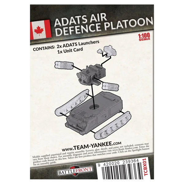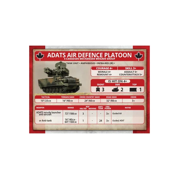 Le missile ADATS est un missile supersonique guidé par laser d’une portée de 10 kilomètres, avec un capteur électro-optique avec TV et infrarouge à visée prospective (FLIR). Le véhicule porteur dispose également d’un radar de recherche d’une portée effective de plus de 25 kilomètres.