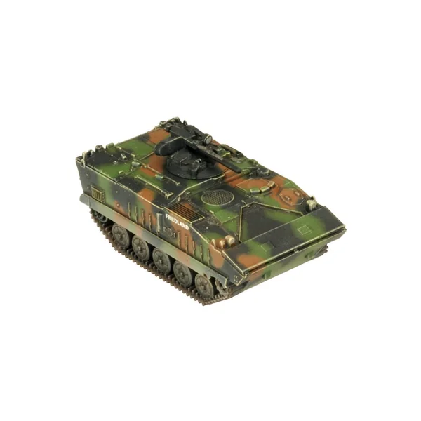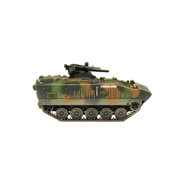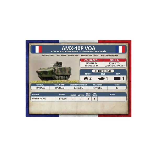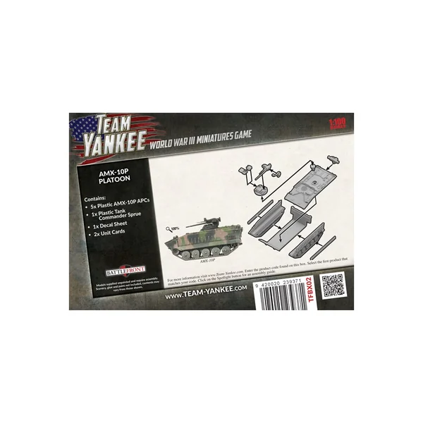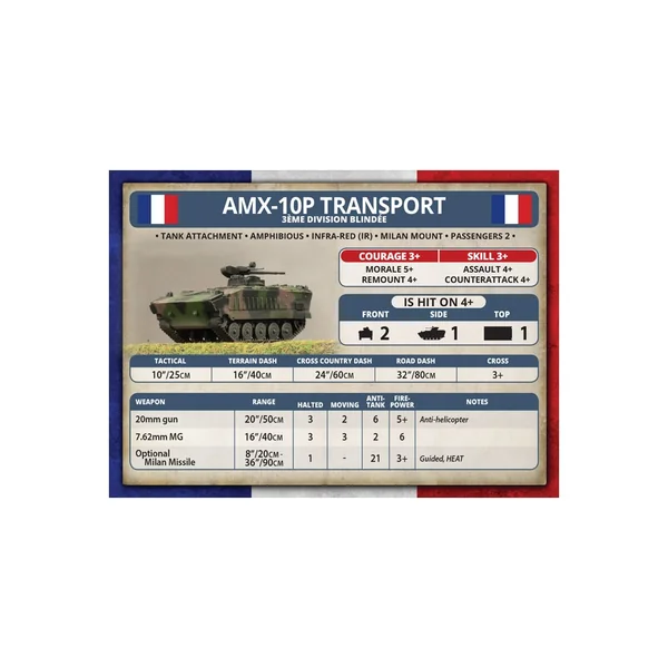 Contient cinq APC AMX10P en plastique, une grappe de Tank Commander en plastique, une planche de décalcomanie et deux cartes d’unité.