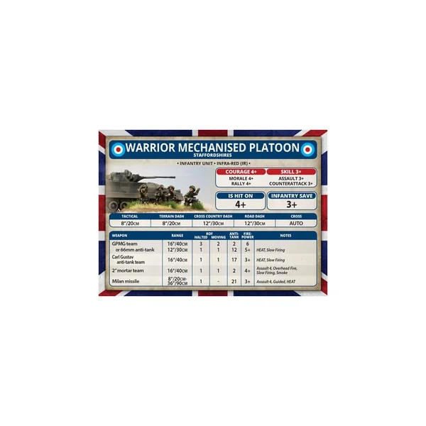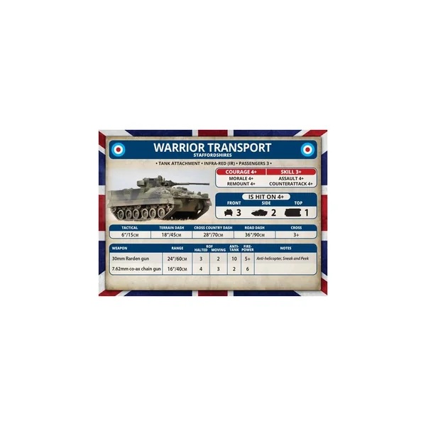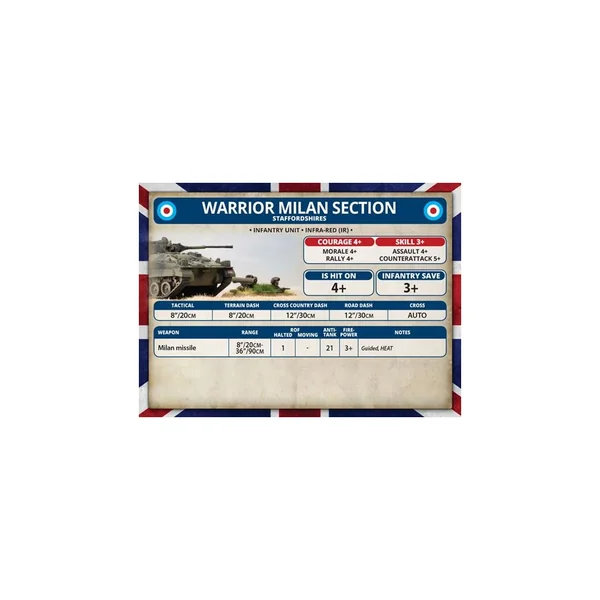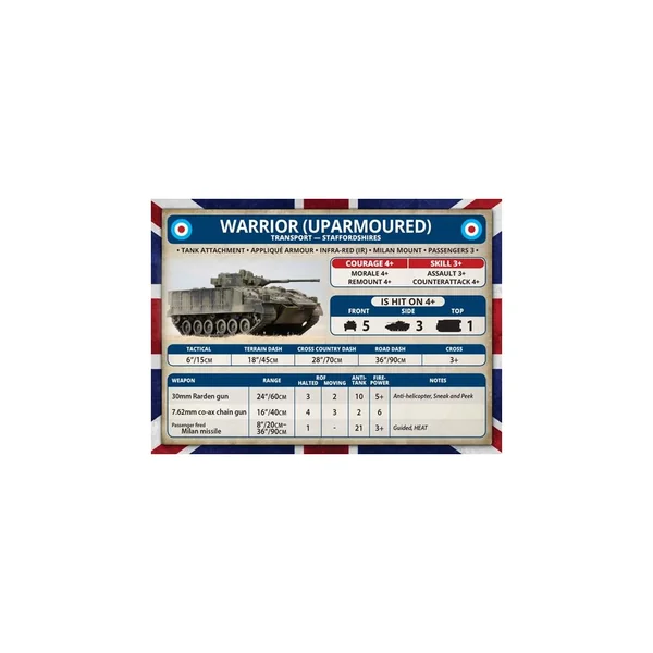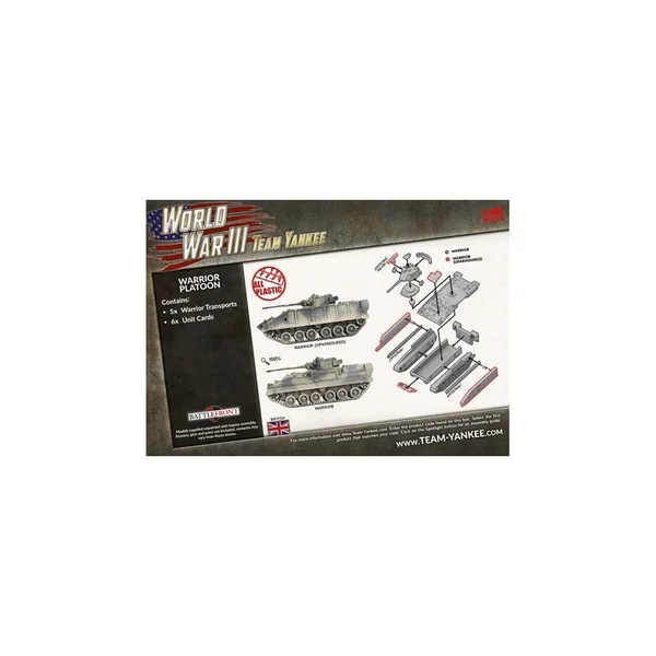 La boîte Challenger Armoured Troop contient cinq véhicules de transport Warrior ou 5 véhicules anti-tank (Milan) Warrior.