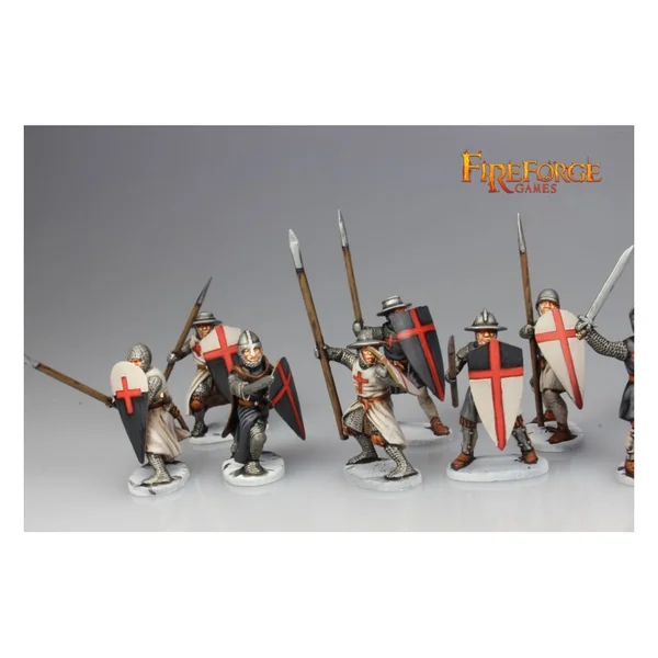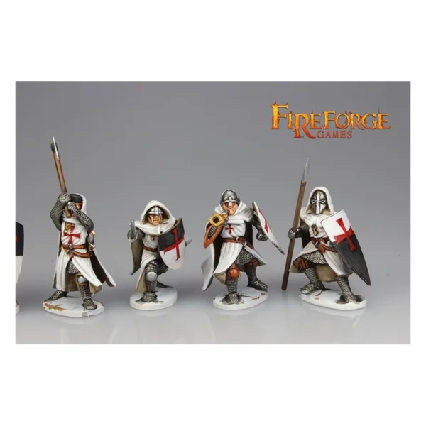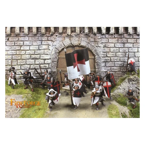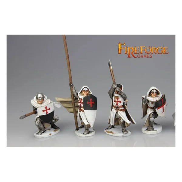 Cette boîte permet de monter 12 arbalétriers ou 24 templiers à pied, à assembler avec différentes têtes, armes et accessoires.