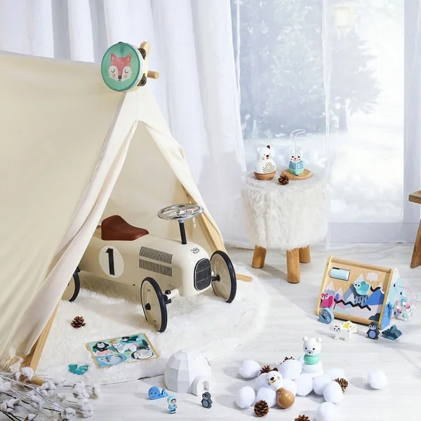 Pour jouer, faire la sieste et se cacher, elle s’intègre dans la déco d’une chambre avec son design pur.