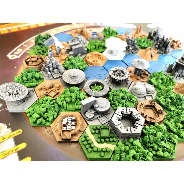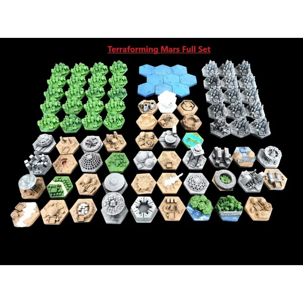 Set de tuiles imprimé en 3D et peintes pour Terraforming Mars afin d’ajouter du relief à vos parties.