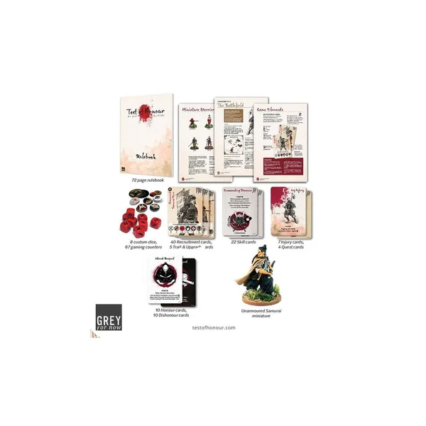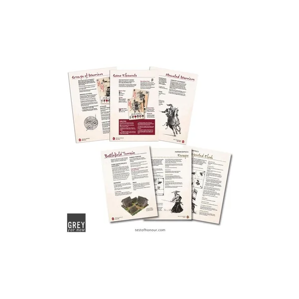 Test of Honour est un jeu d’escarmouche, avec environ 10-20 figurines de chaque côté. Les joueurs choisissent leur force avant chaque partie autour d’un héros – peut-être un samouraï, un ronin sans maître ou même un moine guerrier – ainsi que d’un ou deux fidèles compagnons et une variété de disciples, qui peuvent être des soldats de clan ou des paysans. Les batailles sont rapides et sanglantes car les joueurs alternent les combats avec l’un de leurs guerriers – se déplaçant et se battant pour atteindre l’objectif du scénario, que ce soit pour abattre l’ennemi, défendre un avant-poste ou trouver et protéger un espion. Au fil des batailles, votre héros utilisera de nouvelles compétences et peut-être même empruntera la voie honteuse de la tromperie et de la ruse pour remporter la victoire – de tels choix sont le test ultime de l’honneur.