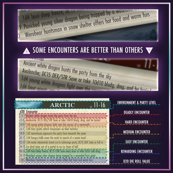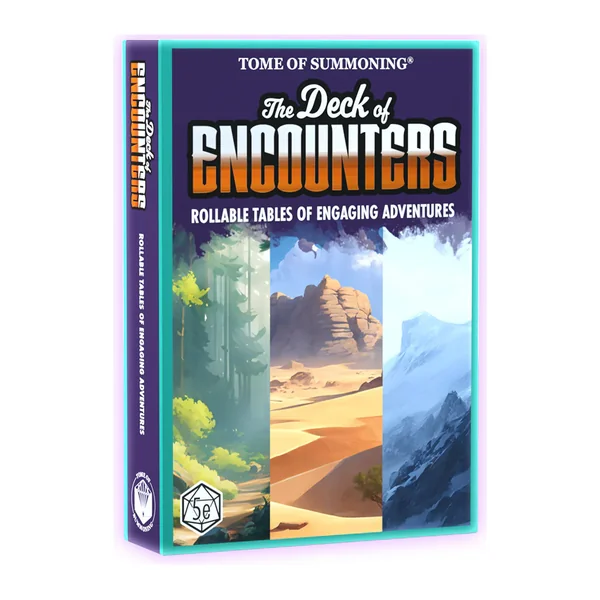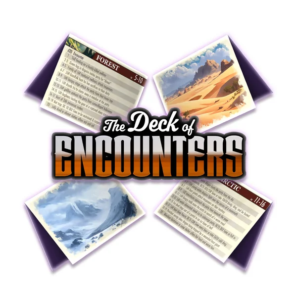Améliorez vos parties et stimulez vos joueurs avec des tables d’événements aléatoires thématiques adaptées à vos environnements d’aventure préférés grâce à The Deck of Encounters !