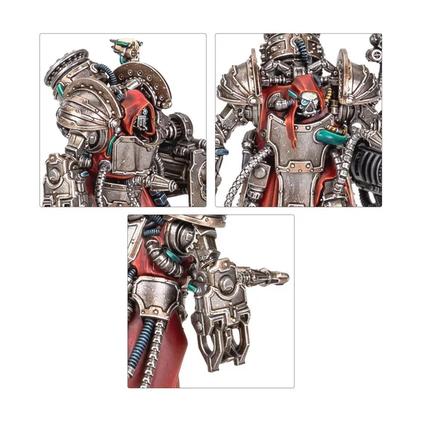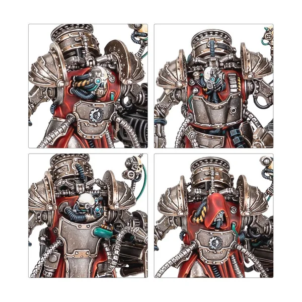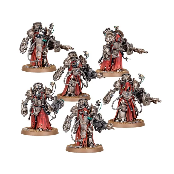 Les Myrmidons Destructors considèrent le combat comme une méthode leur rendant possible de percevoir la volonté de l’Omnimessie, un état auquel ils accèdent à travers le grondement des armes lourdes, les décharges de plasma et les impulsions de radiations brûlantes. Pour ces anciens au corps gigantesque, chaque salve est une prière, et chaque bataille remportée, une humble offrande faite à l’Omnimessie. La puissance de leurs interventions est telle que le Magos Militant d’un monde-forge se donnera beaucoup de mal pour attirer et recruter de pareils combattants lorsque le conflit menace et que les trompes de guerre retentissent. Ce kit en plastique permet d’assembler six Myrmidons Destructors, une infanterie lourde d’élite pour vos armées du Mechanicum dans les parties de Warhammer: The Horus Heresy. Ils peuvent être équipés de canons Darkfire antiblindages ou d’engins à irradiation faisant fondre l’infanterie, et quand la mêlée se referme, ils emploient alors leurs chargeurs-choc pour écraser leurs adversaires. Cette unité très résistante est un excellent moyen de fournir un tir de soutien au reste de votre armée tandis qu’elle progressera à ses côtés. Chaque Myrmidon Destructor dispose d’un choix de deux têtes, avec ou sans capuchon, et les six servocrânes fournis sont interchangeables entre les figurines. Ces figurines ne portent pas de marquages propres à leur allégeance, et vous pouvez donc les utiliser dans n’importe quelle force du Mechanicum, que vous considériez l’Empereur comme le véritable Omnimessie ou comme un faux prophète. Ce kit est composé de 244 éléments en plastique et de 6x Socles Ronds Citadel de 40mm. Ces figurines sont fournies non peintes et nécessitent assemblage – nous recommandons d’employer la Colle Plastique Citadel et la peinture Citadel Colour.
