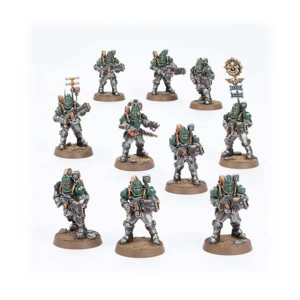 Ce kit est composé de 184 éléments en plastique, de 10x Socles Ronds Citadel de 25mm et d’une Planche de Décalcos d’Infanterie des Solar Auxilia proposant 152 décalcos de grande qualité. Ces figurines sont fournies non peintes et nécessitent un assemblage.