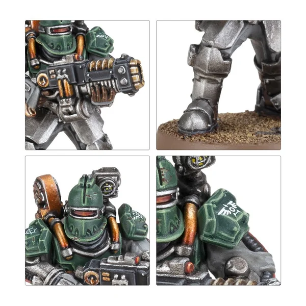 Ce kit plastique permet d’assembler une Section d’Assaut Veletaris de 10 Veletarii, des troupes de choc d’élite des Solar Auxilia engoncées dans des scaphandres renforcés. Ces soldats peuvent chacun être équipés de chargeurs volkites dévastateurs pour incinérer leurs cibles avec des rayons thermiques, ou de haches d’assaut à deux mains capables de trancher les ennemis les plus robustes. Vous pouvez mélanger les positions de bras et de corps pour les deux types d’arme, ce qui vous offre une grande variété visuelle même si vous agrandissez votre cohorte.