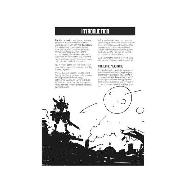 The Mecha Hack est un jeu de rôle de machines de guerre titanesques et de leurs pilotes intrépides, conçu à partir de The Black Hack.