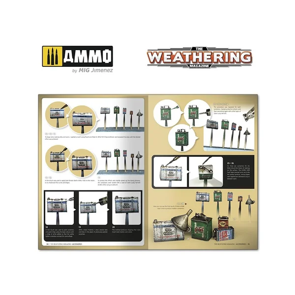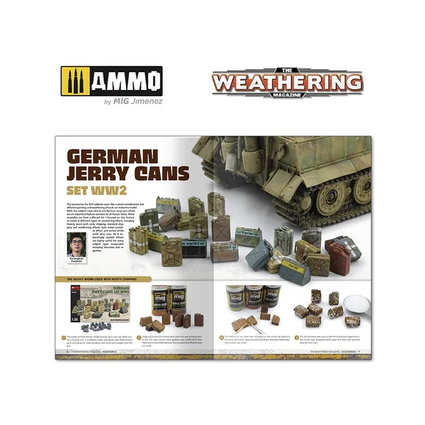 Le dernier numéro de votre magazine préféré se concentre sur un aspect important de toute construction : les accessoires. Les détails et les accessoires optionnels qui apportent du réalisme à vos projets de modélisme, ajoutent de la narration ou complètent un diorama. Ces accessoires offrent d’intéressantes possibilités de peinture et de vieillissement. Par exemple, peu de projets allemands de la Seconde Guerre mondiale sont complets sans les « jerrycans allemands », les sacs de rangement et de sable sont un sujet populaire chez les modélistes de blindés, les munitions de chars et les caisses de munitions, y compris les différentes zones métalliques et les bois texturés.