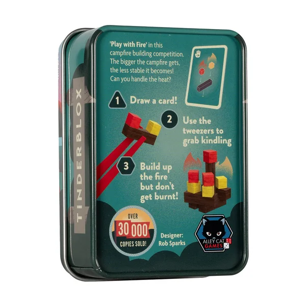 Tinderblox Sunset est une variante fabriquée en bois et papier issus de sources durables, et inclut la mini-extension Marshmallow !