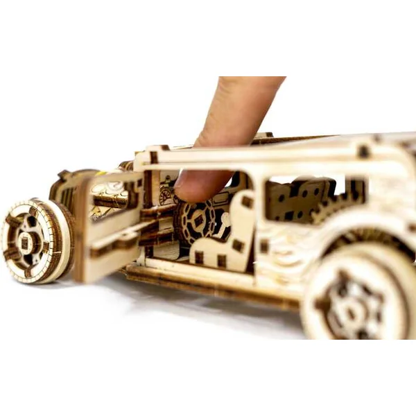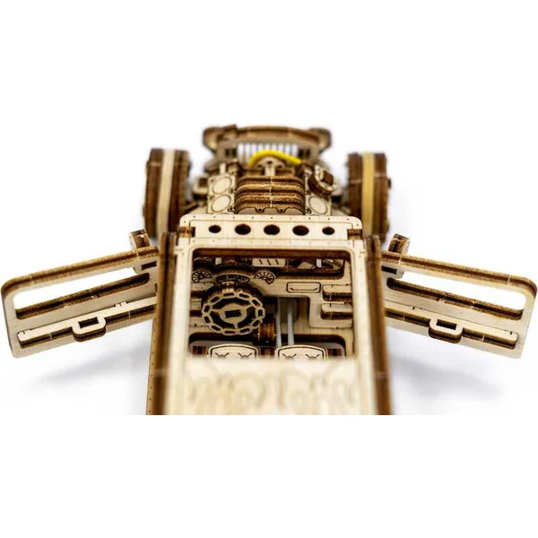 Ce modèle de hot rod est un miracle mécanique. Il est équipé d’un mécanisme rétractable et se déplace dynamiquement en avant et en arrière sur environ un mètre. Les portes ouvrantes offrent encore plus de réalisme et vous permettent de vous plonger encore plus profondément dans le processus d’assemblage. Nos modèles en bois découpés au laser allient une précision maximale à un assemblage simple qui est tout simplement un plaisir. Grâce à des fonctionnalités intelligentes qui animent les modèles en bois, ils offrent une expérience fascinante.