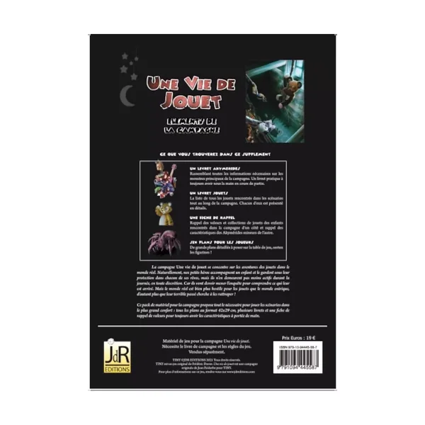 Ce pack de matériel propose tout le nécessaire pour jouer les scénarios de la campagne “Une vie de Jouet” dans le plus grand confort. Dans une chemise cartonnée sont rassemblés 6 plans couleurs de 42x30cm (l’appartement, l’île noire et la base de l’île noire, le dojo, la boutique et enfin les ruines de l’immeuble).Le pack comprend aussi un livret rassemble tous les Akymérides de la campagne, un livret précise toutes les caractéristiques des jouets rencontrés et une fiche cartonnée de rappels.