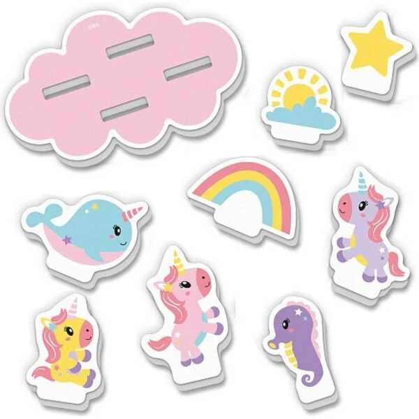 - 8 autocollants aquatiques sur le thème des licornes et 1 île flottante.