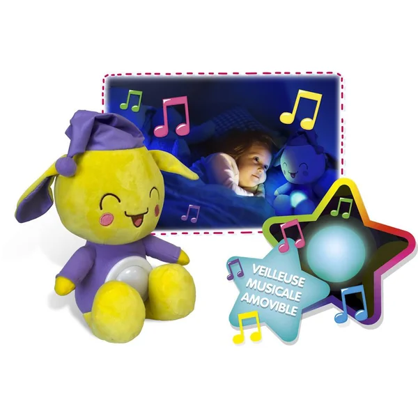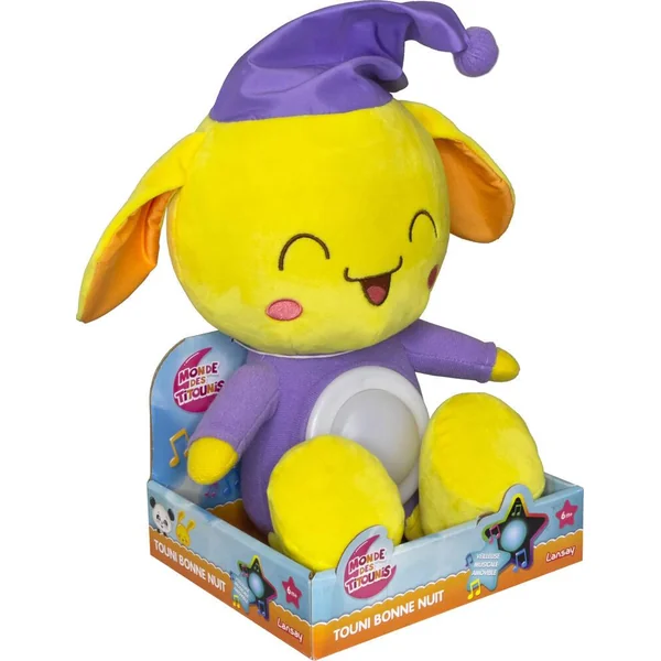 La peluche Touni Bonne Nuit est le compagnon idéal des tout-petits pour les aider à passer des nuits calmes et paisibles. En appuyant sur son ventre, la peluche se transforme en une veilleuse musicale qui diffuse une légère lumière et une douce mélodie.