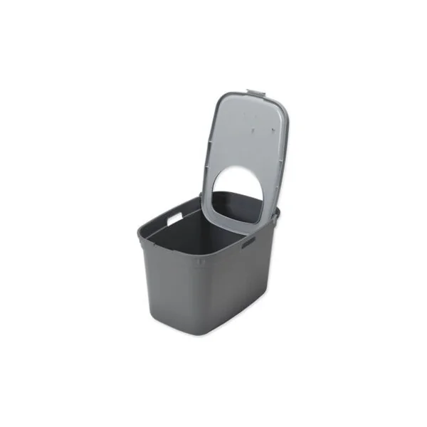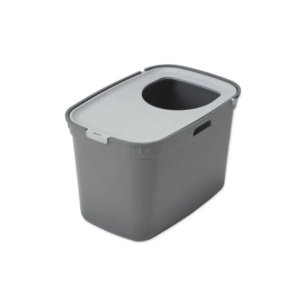 Grâce à l’ouverture dans le couvercle, la litière est retenue lors des sauts, ce qui laisse un minimum de désordre autour. L’entrée supérieure empêche également les chiens ou les jeunes enfants d’accéder à la litière et offre au chat plus d’intimité pour ses besoins.