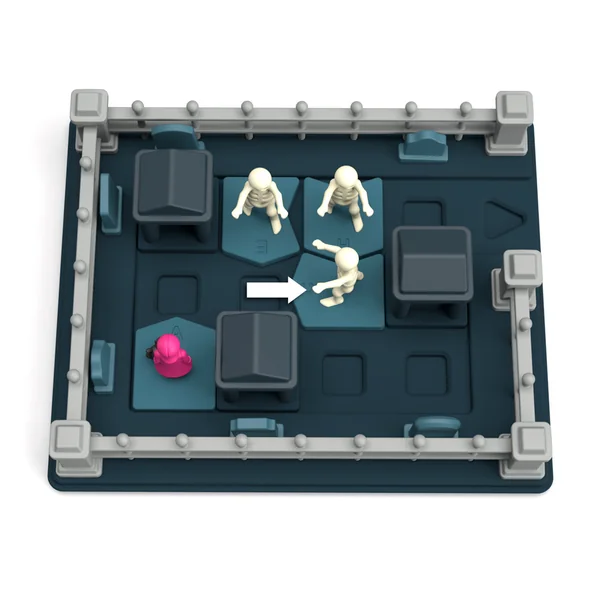 Mais pour quelle raison minou s’est-il enfui dans le cimetière voisin à minuit ? Vous voilà contraint d’aller le chercher. Malheureusement, vous êtes tombé sur un os ! Une horde de squelettes voraces vous barre le passage vers la sortie et est bien décidée à faire de vous son souper… « Tombe Frayeur » est un jeu de déplacement séquentiel dans lequel vous devrez planifier subtilement tant vos déplacements que ceux des squelettes afin de trouver votre unique chemin vers la sortie. Saurez-vous surmonter votre peur tout au long des quatre-vingt défis du plus simple au plus complexe ?