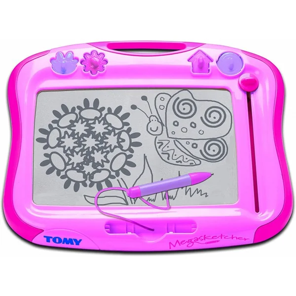 Pourquoi choisir l’ardoise magique rose Megasketcher de TOMY pour vos filles de 3 ans 1. Outils d’apprentissage, aidez les enfants à développer leur côté artistique et à s’initier au dessin et à l’écriture. 2. Jouet éducatif idéal et excellent cadeau d’anniversaire ou de Noël pour les filles de plus de 3 ans. 3. Respectueux de l’environnement, une bonne alternative aux dessins sur papier ou à la peinture chimique. 4. Pas de taches, pas d’encre et effaçable 5. Quatre tampons de formes différentes inclus Description: Matériau: Plastique Taille (L x l x h) : 41 x 36 x 4 cm Poids: 689g Enfants à partir de 3 ans Ne convient pas aux enfants de moins de 3 ans, contient de petits éléments détachables susceptibles d’être avalés. Le produit comprend: 1 x ardoise magnétique rose 1 x stylo magique 4 x tampons Avertissement De Sûreté Ne convient pas aux enfants de moins de 3 ans, contient de petits éléments détachables susceptibles d’être avalés. Contenu du coffret Le produit comprend : – 1 x ardoise magnétique rose – 1 x stylo magique – 4 tampons