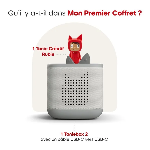 - 1 Toniebox 2 et son câble USB-C vers USB-C,