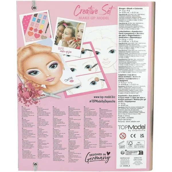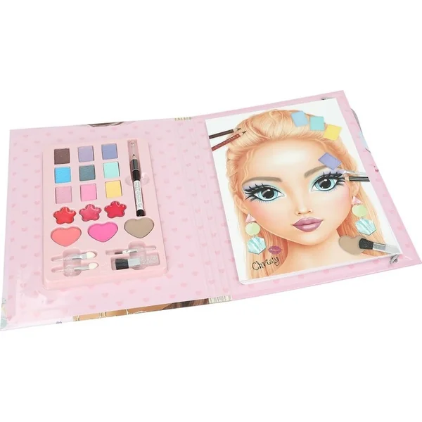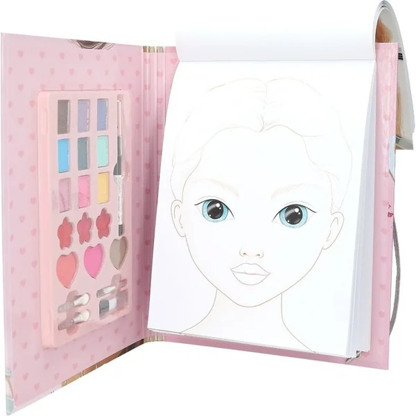 Des livres de coloriage créatifs préférés avec une couverture rigide au design unique de la marque Top Model Make-up Studio, comprenant une palette de 9 fards à paupières, 4 gloss à lèvres, 3 crayons pour les yeux, 3 blushs et des pinceaux pour un maquillage parfait.