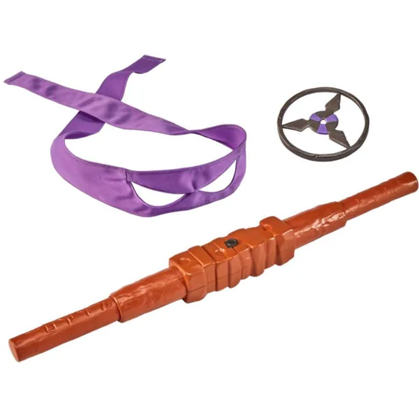 LICENCE : Produit officiel TORTUES NINJA PRODUIT : Armes de Donatello avec une fonction télescopique. Appuie sur le bouton et avec un mouvement de la main tu es prêt au combat. ACCESSOIRES : Avec son arme signature, une étoile ninja et le bandeau ninja violet de Donatello-
