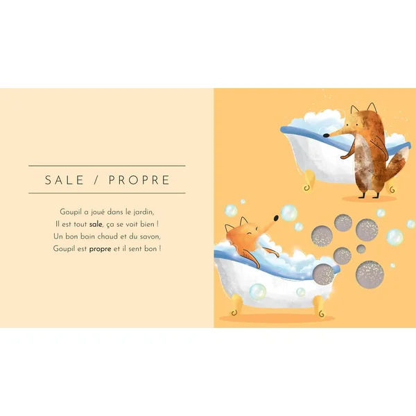Grand-petit, sale-propre, vide-plein… découvre tous les concepts des contraires en suivant les aventures du petit renard protagoniste !