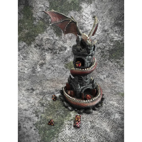 Tour de dés d’inspiration Dragon imprimée en 3D.