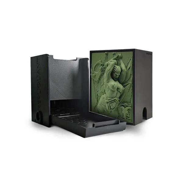 Le fait de pouvoir verrouiller votre tour à dés offre de nombreux avantages, comme la durabilité et la solidité de votre tour à dés. Mais aussi, elle transforme votre tour à dés en boîte de transport pour vos sets de dés pour jeux de rôles (suivant les dimensions de vos dés, vous pouvez mettre au moins 3 sets complets).