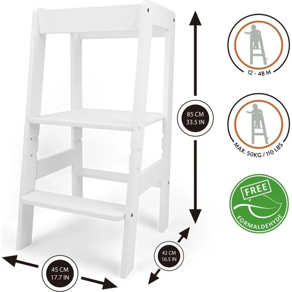 L’enfant peut monter sur la tour d’apprentissage de manière autonome, la marche du sol est à une hauteur de 20 cm, ce qui aide l’enfant à accéder à la tour en toute sécurité.
