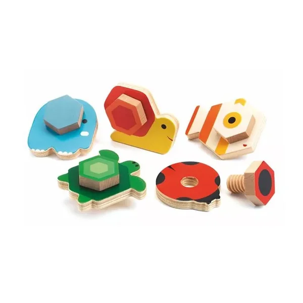 L’enfant choisi un animal et cherche la vis correspondante à sa couleur pour le compléter.