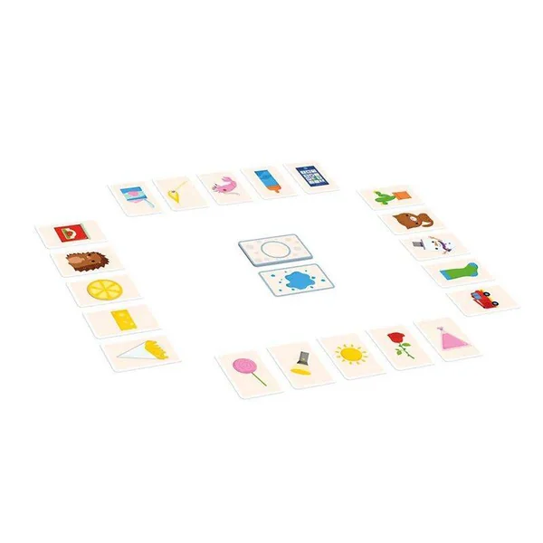 À son tour le joueur regarde s’il a parmi ses cartes un objet qui répond à la caractéristique demandée : il peut s’agir de formes, de couleurs, mais aussi de concepts invisibles comme salé, sucré, chaud, froid, piquant, bruyant, etc.