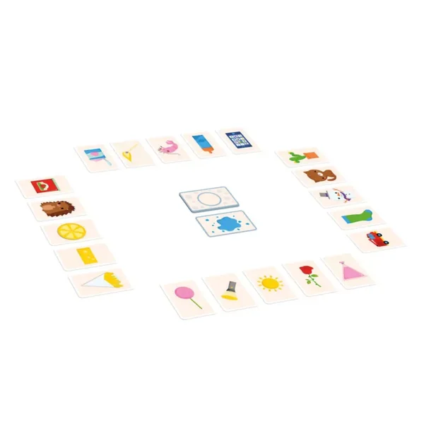 À son tour le joueur regarde s’il a parmi ses cartes un objet qui répond à la caractéristique demandée : il peut s’agir de formes, de couleurs, mais aussi de concepts invisibles comme salé, sucré, chaud, froid, piquant, bruyant, etc. Le premier à avoir posé toutes ses cartes a gagné.