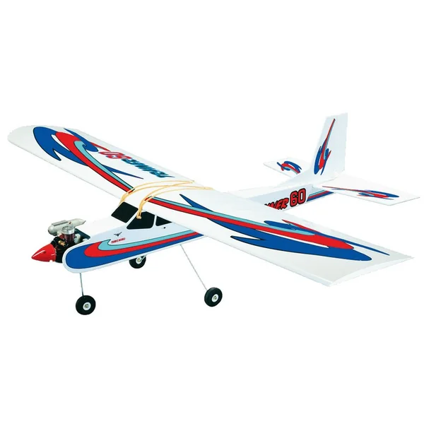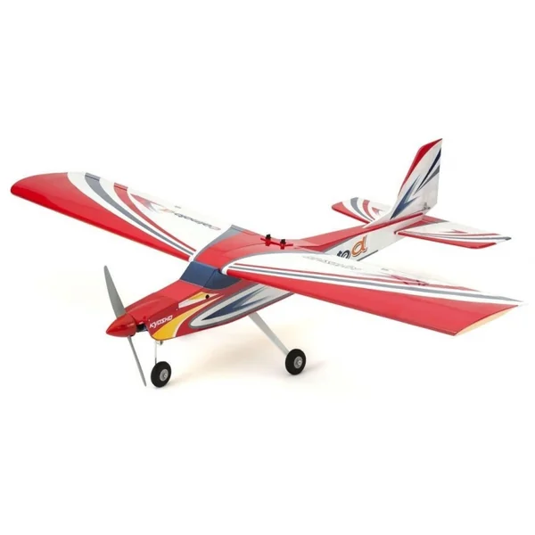 Instructions de montage simples et détaillées en français avec photos, fuselage, ailes et empennages en construction traditionnelle balsa/contreplaqué et recouverts de film thermorétractable, train d’atterrissage, roues, accessoires pour l’installation RC, stickers.