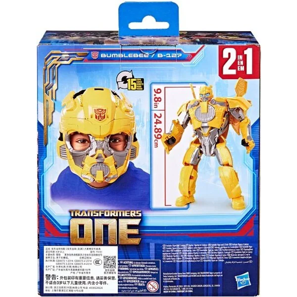 Cette figurine de 24,89 cm Bumblebee/B-127 se transforme en 15 étapes du mode robot au mode masque. Les enfants peuvent porter le masque et vivre d’incroyables aventures imaginaires dans l’univers des Transformers. La figurine est inspirée du personnage emblématique du film Transformers One. Les jouets interactifs inspirés du film, comme ce jouet Bumblebee/B-127, sont un excellent cadeau pour les garçons et les filles à partir de 6 ans.