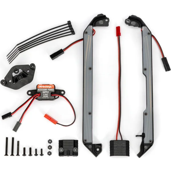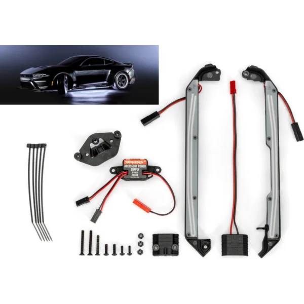 Ajoutez un style supplémentaire de véhicule tuning à votre modèle de voiture RC avec châssis Traxxas 4-Tec ® 2.0 (y compris le modèle Drift) grâce à ce kit d’éclairage LED de châssis. Le kit est également compatible avec la plupart des carrosseries de 200 mm conçues pour ce châssis on-road populaire. Les bandes LED sont solidement enfermées à l’intérieur d’un boîtier robuste. Les seuils sont facilement fixés sur les côtés du châssis à l’aide des accessoires de montage fournis. La source d’alimentation de 3 volts se connecte directement au connecteur du régulateur à l’aide d’un adaptateur. L’installation est donc extrêmement simple et il n’est pas nécessaire de souder quoi que ce soit.