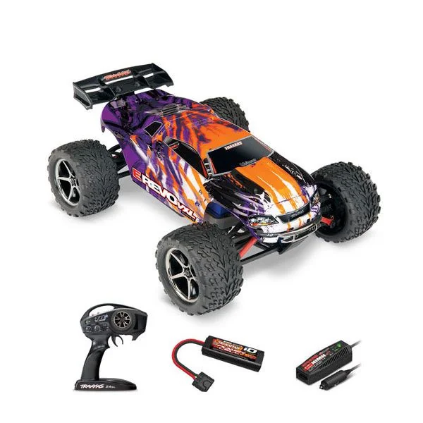 Ce Traxxas Mini E-Revo est livré en Prêt à rouler avec un système radio TQ 2,4 GHz, le moteur Titan 550, le variateur électronique XL-2,5, la carrosserie peinte et décoré et les pneus pré-collés !