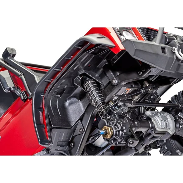 Équipé d’un moteur Titan 21T et d’un régulateur XL-5 HV, le TRX-4 est compatible avec des batteries LiPo 2S et 3S, permettant une puissance impressionnante et une autonomie prolongée pouvant atteindre 2 heures avec une batterie 3S de 5000 mAh. Les essieux portiques augmentent la garde au sol et réduisent les contraintes sur les arbres de transmission, tandis que les engrenages en acier garantissent une durabilité exceptionnelle, même sur les terrains les plus accidentés.
