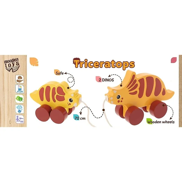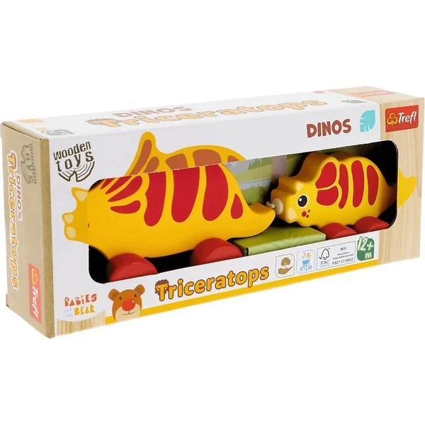 Trefl Jouet en bois à tirer Dinosaure Triceratops