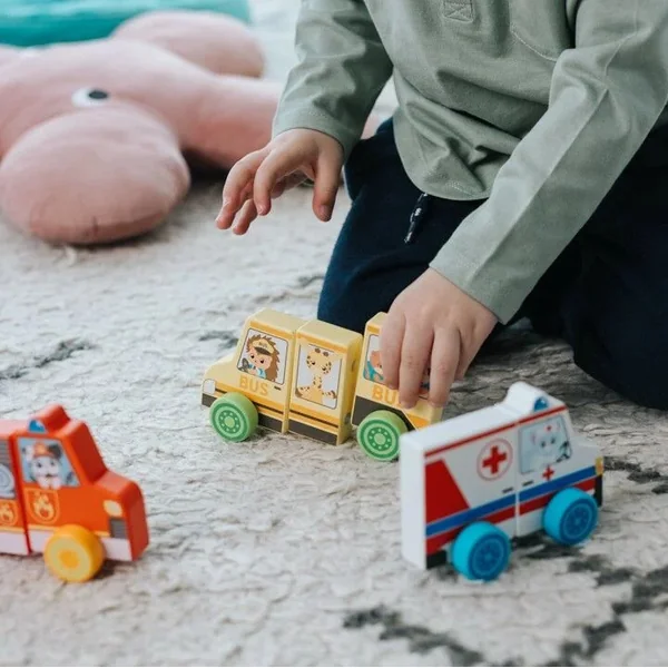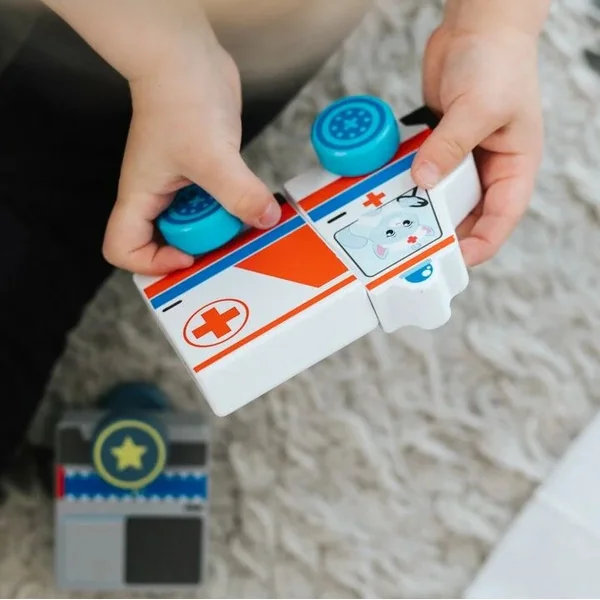 Véhicule magnétique : L’ambulance de Tiny Tails est un jouet en bois unique. Le chariot se compose de deux éléments reliés magnétiquement et de roues pivotantes. Les parties magnétiques peuvent être mélangées et connectées à d’autres véhicules de la série, révélant encore plus de possibilités de jeu !