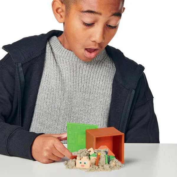 Découvriras-tu le trésor en or véritable ? Creuse, découvre et construis ton personnage Minecraft. Hauteur de la figurine : 6 cm. Hauteur du cube : 7 cm.